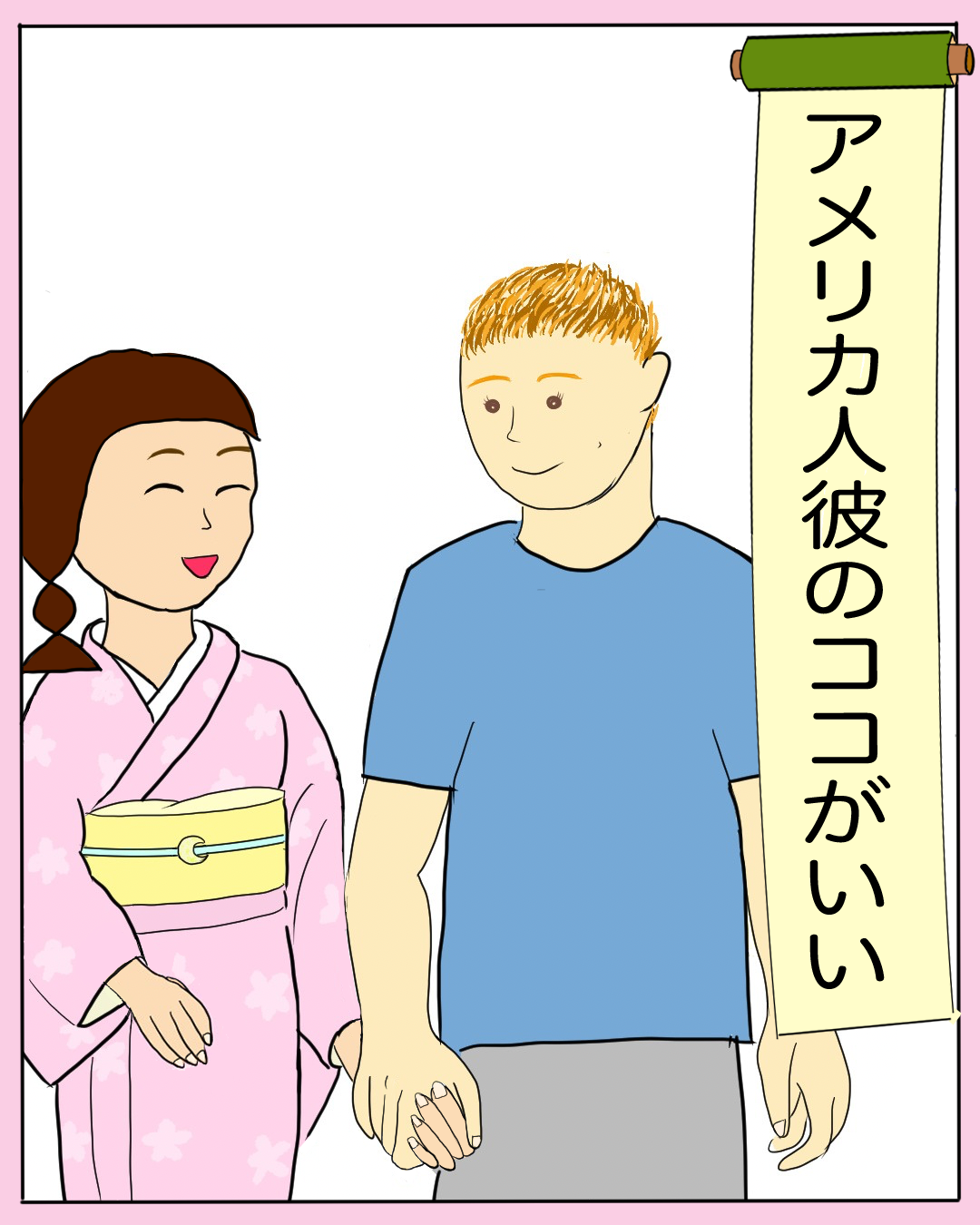 こんにちは。つい最近誕生日を迎え、精神年齢との差に驚いているそらみです。 20代後半から付き合っているアメリカ人彼氏。 彼の何が好きなのかを絵にしてみました。