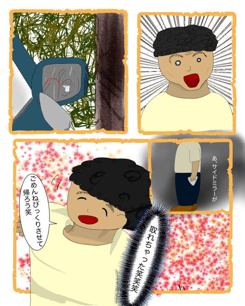 出庫のときに、壁にがっつり擦ってミラーがとれたんです