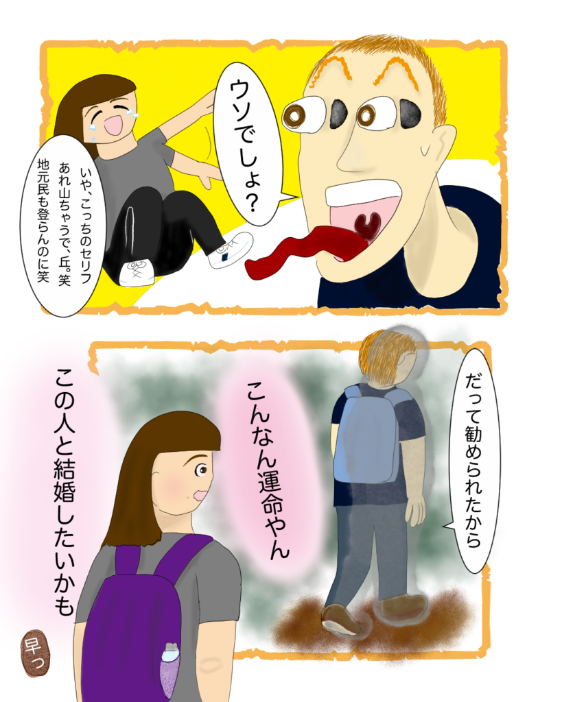 HOME > 国際恋愛 > 国際恋愛日本で恋活に失敗したわたしが、アメリカ人と付き合うまで⑥ 2026年2月27日 ※ 当サイトではアフィリエイト広告を利用しています前回のお話はこちら https://soramino.blog/?p=543正直この時点で好感度めっちゃ上がったかれが口にした山の名前は、わたしの実家の裏山だった仕事も知ってて、わたしの地元も来てる正直、身辺調査をされてて詐欺られるかもって結構思った笑詐欺か、恋か、どっちになるのか? Post Share Pocket Hatena LINE URLコピー -国際恋愛 -アメリカ人彼氏, エッセイ漫画, なれそめ, バンブル, マッチングアプリ, 国際恋愛
