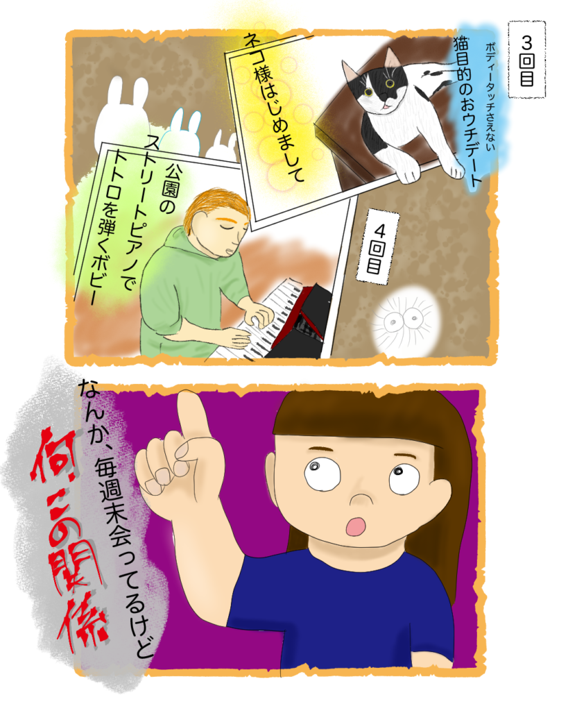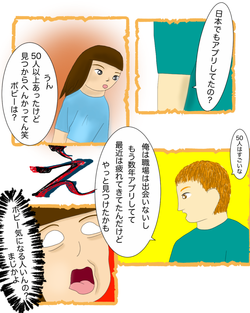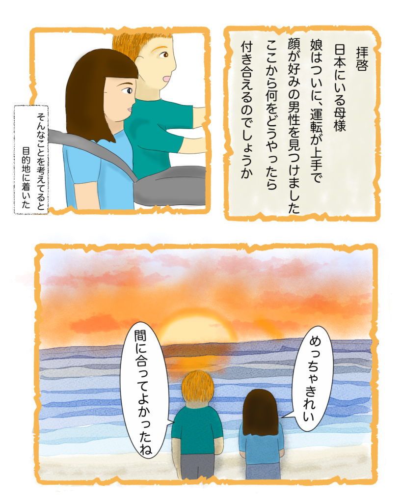 HOME > 国際恋愛 > 国際恋愛日本で恋活に失敗したわたしが、アメリカ人と付き合うまで⑩ 2026年3月4日 ※ 当サイトではアフィリエイト広告を利用しています前回のお話はこちら https://soramino.blog/?p=600&preview_id=600&preview_nonce=4caf1dda1e&preview=true&_thumbnail_id=6082回目のデート中に思い出したこととは?そういう母が選んだ相手(つまり父)は、運転が下手くそだったいままで勝手に「この人が運命の人や!」と思ったことはあったものの、実らずに生きてきてもうアラサーいや、なんなんこれ。と思いながらも、毎週末会うようになり、4回目のデートでとある会話をした Post Share Pocket Hatena LINE URLコピー -国際恋愛 -アメリカ人彼氏, アメリカ生活, エッセイ漫画, なれそめ, なれそめ漫画, マッチングアプリ, 国際恋愛